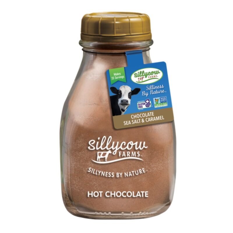 Silly Cow Farms Chocolate Caramel & Sea Salt is a decadent hot chocolate mix that combines rich cocoa with sweet caramel and a hint of sea salt for a perfect balance of flavors. Packaged in a signature glass milk bottle, it offers a luxurious, indulgent treat.
